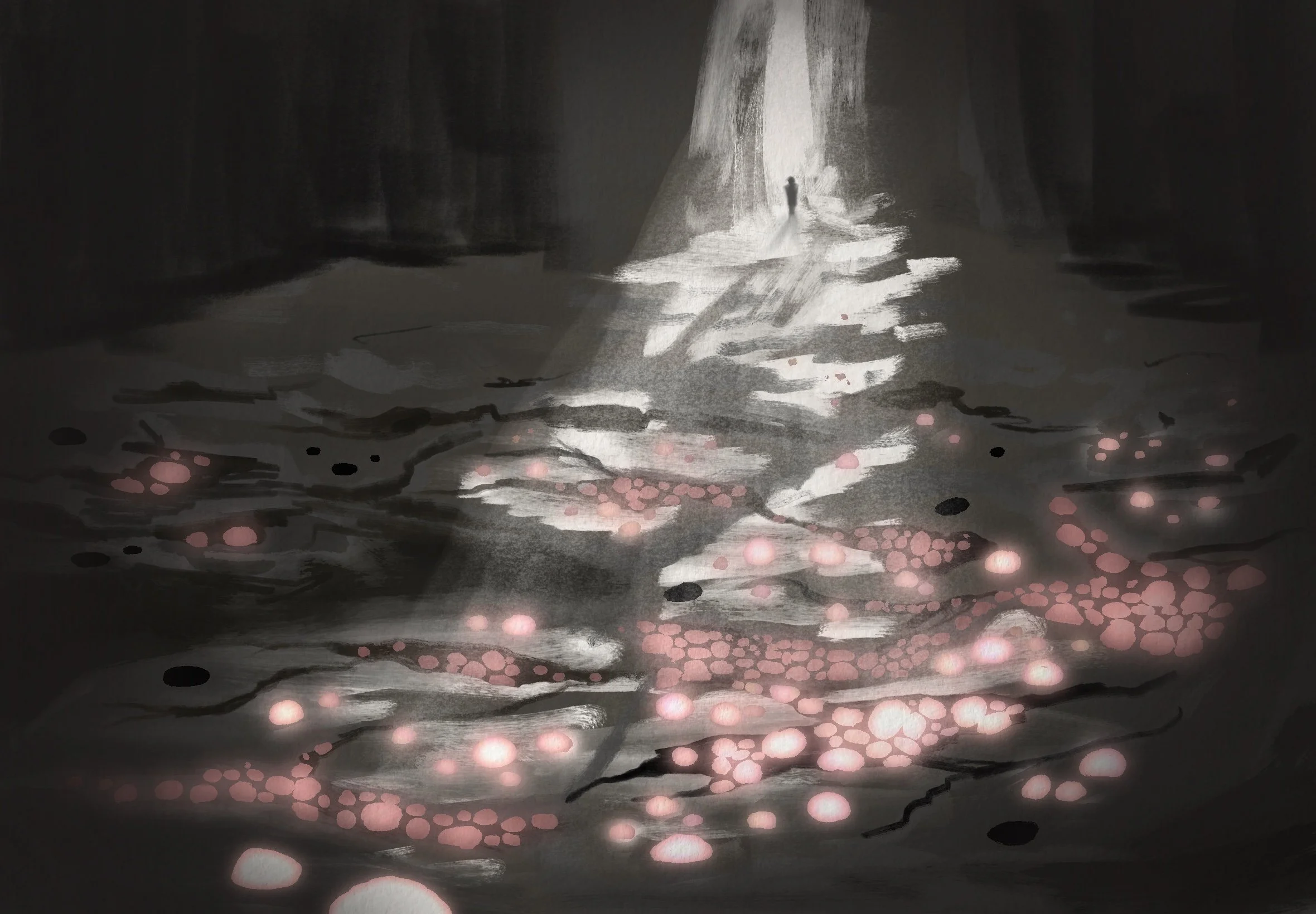 His work was long and silent; known only to himself and the stones. He would take a smooth river rock and with a patient hand, polish it until it shone and sparkled, infusing it with his determination and care. Then he would place it carefully into a hole, sealing the magic within so that it would no longer drift away. His task was long and slow, but after much toil he finally healed the last stone, restoring the natural flow of magic to the ground. Upon completion of his quest, he finally returned to the Great Eastern Forest, where he would spend the rest of his days with the one he loved.
